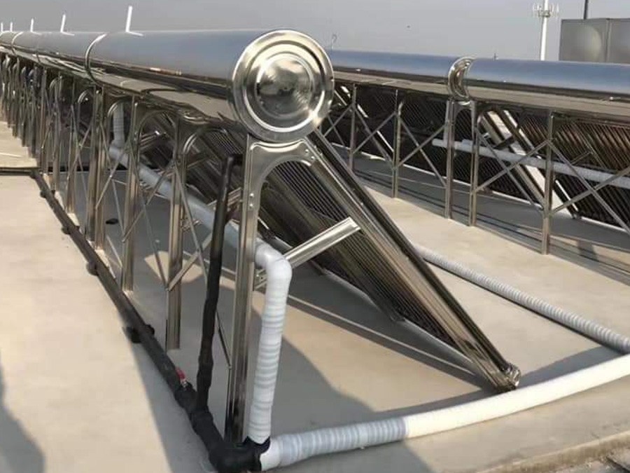 Full stainless steel high pressure solar water heaters 36 pcs,provide 200L hot water for each room in a hotel.