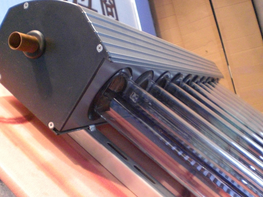In the heat-tube the high heat-conductive heat-tube type core,shaped aluminum heat-absorbing sheet,high-B-Si glass,magneric-controlled sputtered selective absorption coating and medium-temperature hot press and sealing of metal are adopted.