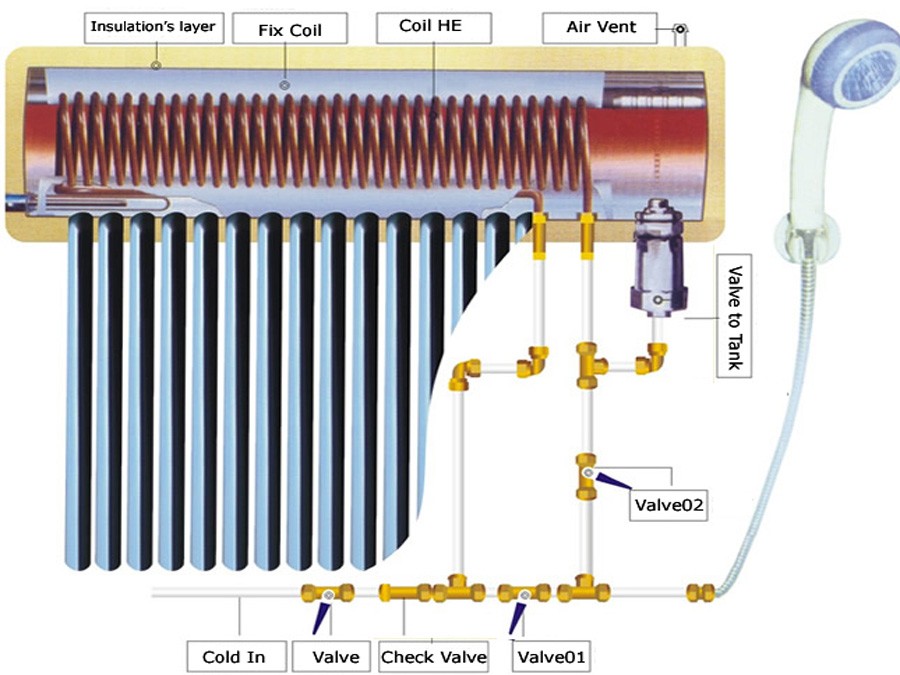 1).Use in any time : It adopts advanced design idea and integrates with high efficiency preheated patent technique, so it can warm the cold water rapidly when it flows through special pipe. It can overcome the short of traditional SWH, such as slow heating, long waiting time.